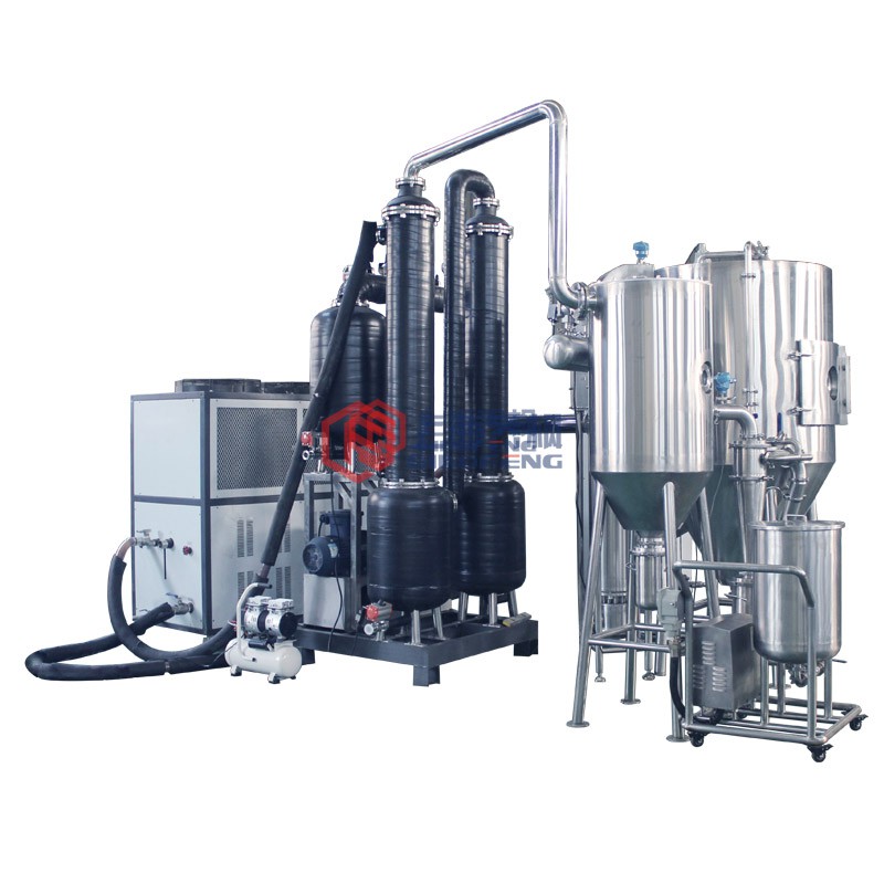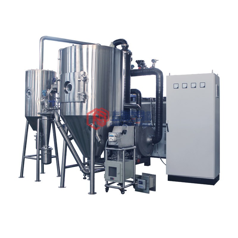 設備主要由:送料系統、加熱系統、霧化系統、噴霧干燥系統、惰性氣體循環系統、產品回收系統、冷凝系統組成。